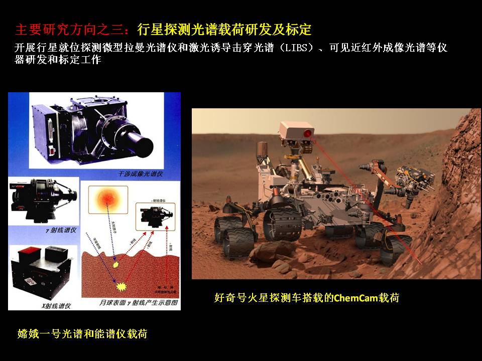 行星科学团队成员深入参与我国嫦娥探月工程、萤火一号等深空探测计划及相关研究课题,承担国家自然科学基金项目5项、山东省自然科学基金2项,参与国家高技术研究发展计划(863)重点项目 1项、中国地质调查局地质调查项目2项、中科院知识创新工程课题2项,其它横向项目多项,自2009年以来,承担的科研经费总额累计300余万元。 学术团队成员在Icarus、JGR 等行星科学重要期刊上发表SCI研究论文近30篇,获得国家专利5项,多次参加国际月球与行星科学大会、欧洲行星科学大会等国际相关会议并作口头报告。 本学科方向以PDS实验室和行星表面物质与环境模拟实验室为平台,以卫星遥感和实验室光谱学为主要手段,利用国内外行星探测数据和实验室模拟样品(包括陨石)光谱,深入开展行星表面形貌与物质成分、环境与地质演化等方面科学研究,服务于国家探月和火星探测等重大任务。主要包括: (1)行星探测遥感与光谱学研究 (2)行星表面物质与环境模拟研究 (3)行星数据系统(PDS)标准研究 (4)行星探测光谱仪器开发及标定